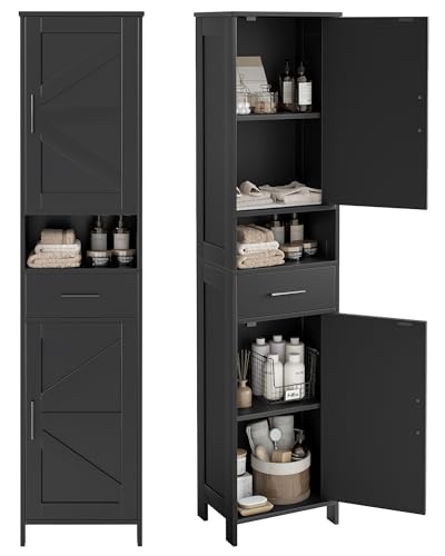 Logimiz Pre-Assembled Bathroom Mirror Cabinet with Storage Organizer, 56 x 41 cm Bathroom Led Medicine Cabinet with Mirror, Wall Mounted or Recessed Storage Lighted Medicine Cabinet, Black