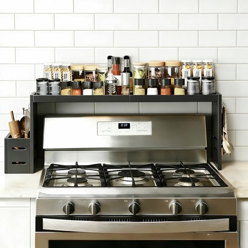 WUIVIUT Magnetic Shelf for Stove Kitchen Spice Rack, 15" Top Storage Over The Stove, Magnetic for Organization Back of Stove (Black, 2 Pack)