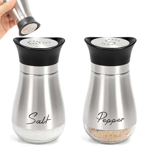 Salt and Pepper Shakers Set by Aelga - Salt Shaker with Adjustable Pour Holes -Stainless Steel Salt and Pepper shakers- Spice Shakers