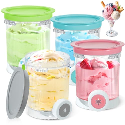Nepfaivy Containers Replacement for Ninja Creami - 4 Pack Ice Cream Pints and Lids Compatible with Ninja NC300 NC301 Creamy Ice Cream Makers, BPA-Free & Dishwasher Safe, Color Lids