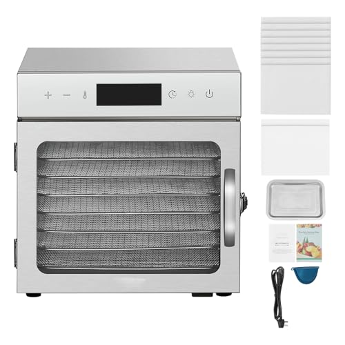 KWASYO Stainless Steel Dehydrator, 8 Tray Food Dehydrator Machine with Recipe Book, 30~90鈩 Temperature Setting, 24H Timer, Dehydrator Food Dryer for Fruits,Meats,Vegetables,Jerky