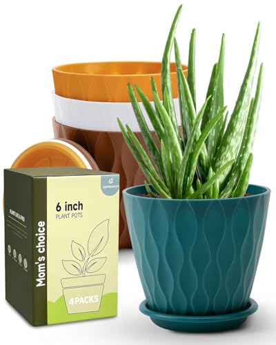 Ekirlin 6 inch Plant Pot - Ceramic Flower Planters Indoor - Modern Succulents Containers with Drain Hole Saucer, Decorate Home, Office & Outdoor (Pink)