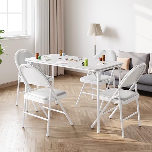 Folding Table 4FT Heavy-Duty Portable Camping Table Foldable Lightweight Table Plastic Dining Table Indoor Outdoor for Picnic Beach Kitchen Office BBQ,Wedding and Party,锛圵hite锛 47''L x 24''W x 29''H