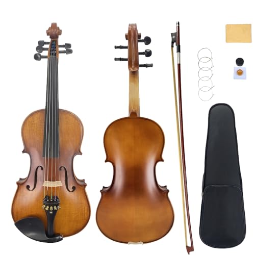 Yinfente 5 String Acoustic Viola 16 inch Full Size For Students,Beginners, Professional Handcrafted Complete Viola Instrument With Case,Brazil Bow,Cleaning Cloth锛孊ridge,Extra Strings Brown