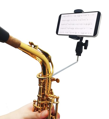 Saxophone Lyre,Adjustable 360掳 Rotation Professional for Alto,Tenor & Bari Sax Lyre,Marching Band Phone Holder,fit 4 x 4mm Square Socket,Compatible with Smartphones 2.57-3.55in Width with Storage Bag