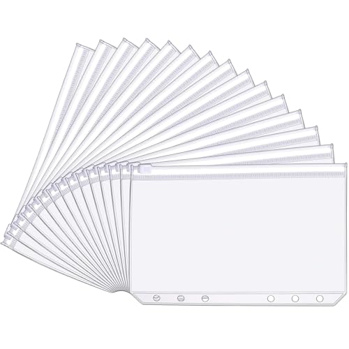 Lanpn 3 Ring Binder Pouch 6 Pack, Pencil Case with Binder Holes, Aesthetic Pencils Pouches, Zipper Pen Bags Holder for Kids Boy Girl School Student, Clear Window & Reinforced Grommets