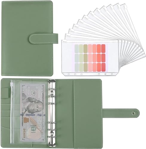 Budget Binder, Budget Binder with Cash Envelopes, Money Organizer for Cash,with 8PCS A6 Binder Pockets, 12PCS Expense Budget Sheets, 26 PCS Letter Sticker Labels