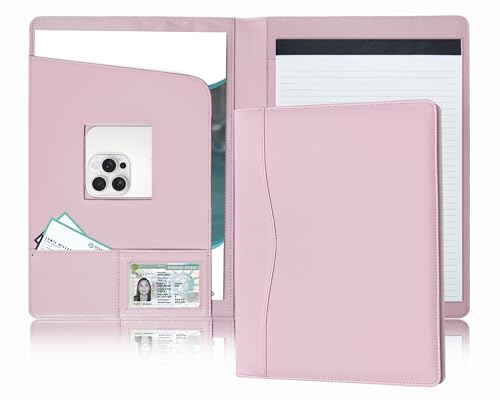 Leather Padfolio Resume Portfolio File Folder 鈥 Interview/Legal Document Organizer for Letter Size Writing Pad with Business Card Holder, Ideal Gift Portfolios for Men & Women (Large, Cognac)
