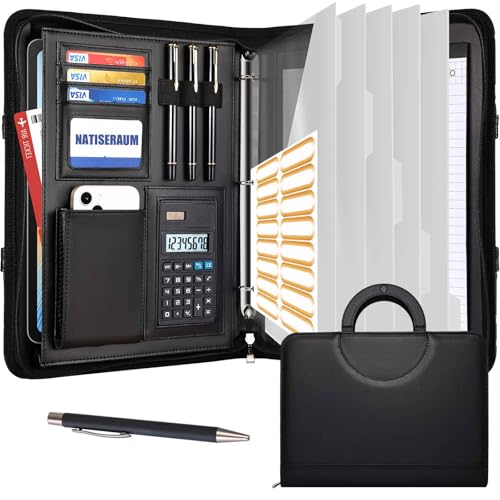 NuVision Zipper Portfolio 3 Ring Padfolio Binder Travel Briefcase with Handle, 8 陆 x 11鈥 Writing Pad, PU Leather Folder,Professional Business Interview/Conference Portfolio, Documents Organizer&Pad Holder