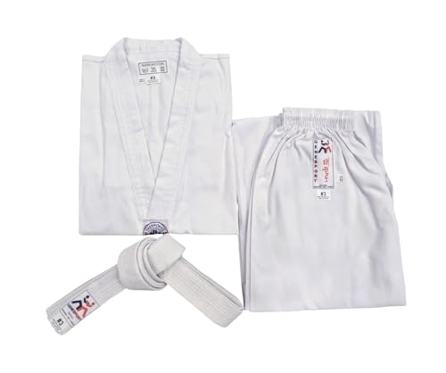 TOPTIE V-Neck Taekwondo Uniform for Kids Adults, TKD Dobok Uniform Martial Arts Uniform with Belt-White Trim-Size 1