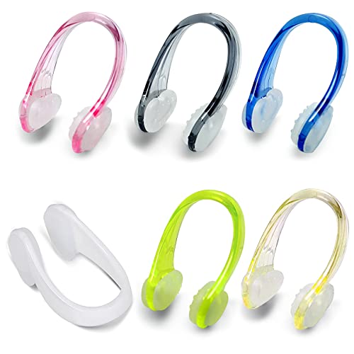 6 Pcs Swimming Nose Clips Silicone Nose Plugs for Adults Children Kids Waterproof Nose Clips for Swimming, Diving, Water Sports (Individually Packaged)