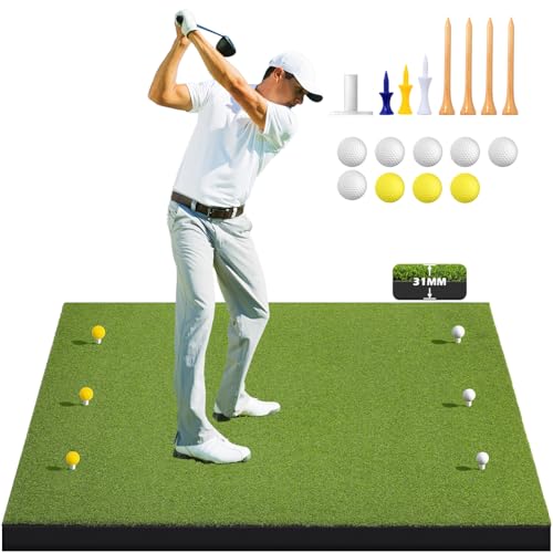YLPARTCHER Golf Mat, 5x4FT Golf Hitting Mat, 31MM/26MM,Golf Training Mat for Swing Detection,Golf Swing Mat Pratice for Indoor/Ourdoor/Backyard/Garage,Nice Golf Tool