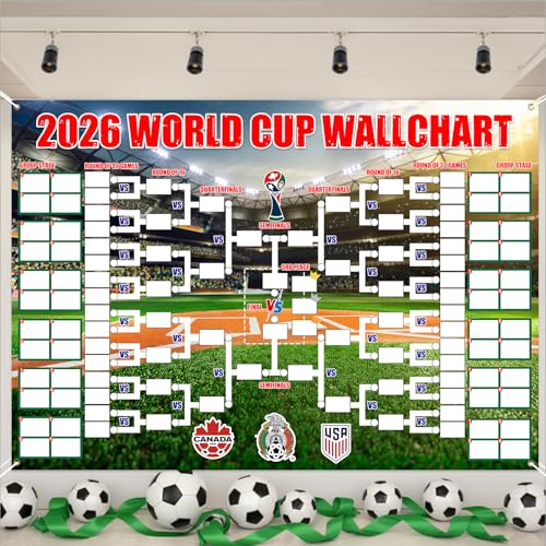 Cup26 Schedule Backdrop Banner&Final Round 48-Team Collection Showcase,2-in-1 Functional Banner&Handwritten Watercolor Pen 2026,Soccer Match Decor Wall Chart,Great Gifts for Soccer Fans 71 * 43In