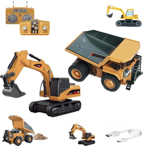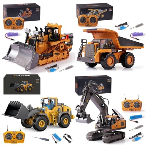 Construction Rc Set of 4, 2026 New Excavator Trucks with Cool Lights and Sounds, Complete Control Over The Construction Site, Alloy + Plastic Material, 2.4ghz Remote, 360 Rotation (Complete Set)