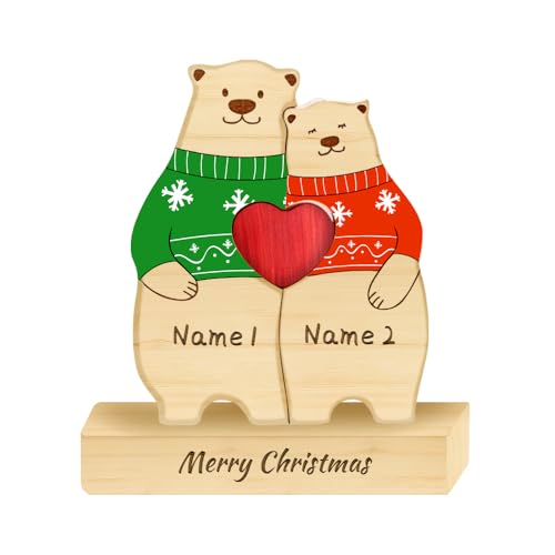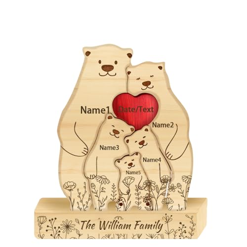 Hugging Bear Family Floral Version Puzzle Mothers Day Home Decor, Personalized Custom Name Wooden Flower Family Bear Puzzle Gift for Mom, Mom Birthay Gifts, Gifts for Wife (style02)