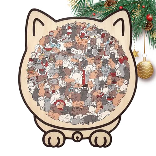135-Piece Colored Cat Shaped Wooden Jigsaw Puzzle,Unique Cute Animal Cats Shape Woodens Puzzles Decor,Framed by Adorable Cat Outlines,Home Decor (A)
