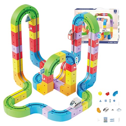 klick Rail Electric Train Set,123 PCS Electric Train Set Flexible Race Track with 2 Cars,Anti Gravity Race Track with Car STEM Learning Gift (123PCS)