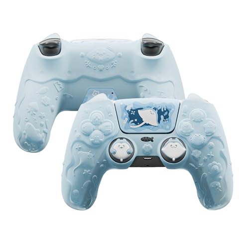 HLRAO Pink Glitter Anti-Slip Protective Silicone Cover Skin Grips Compatible with PS5/Slim/Pro Controller,8 PCS Glitter Thumb Grips Caps and 2 Grips Caps. (Glitter Pink)