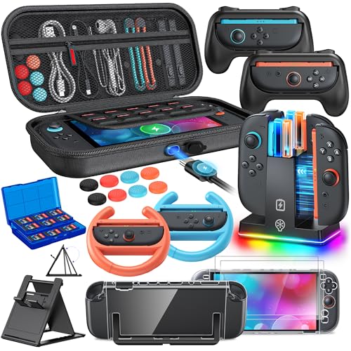 [Both for Switch 2 and 1] FYOUNG Controller Charger for Nintendo Switch 2/1, Fast Charging Dock for Nintendo Switch 2 2025 for JoyCon Accessories,8 in 1 Portable Dual-Direction Magnetic Station