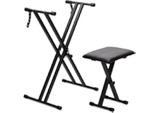 Keyboard Stands and Bench Set,Double-X Keyboard Stand Adjustable & Portable Digital Piano Stand with Locking Straps