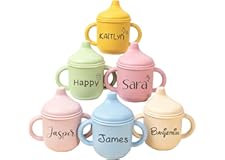 Personalized Baby Sippy Cup with Engraved Name - Soft Silicone Training Cup for 6+ Months | Leak Proof, 5oz Toddler Cup with Handle | Newborn & Christmas Gift (Style 1)