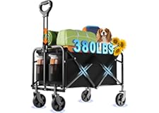 InBrave Collapsible Wagon Cart with All-Terrain Wheels, Foldable Wagon with 380LBS Load Capacity, Portable Lightweight Utility Wagon for Shopping, Grocery, Beach, Garden (Black)