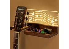 Guitar Wall Mount with LED Lights, Light up Guitar Wall Hangers with Shelf and Pick Holder, Wood & Acrylic Hanger Wall Mount, Music Accessories Gifts for Music Lover Player