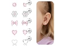 Hypoallergenic Earrings for Girls,Toddler Screw Back Earrings for Kids Baby Women Lightweight Surgical Stainless Steel Cute Pink Bow Butterfly Heart Flower CZ Flat Back Stud Earring for Sensitive Ears