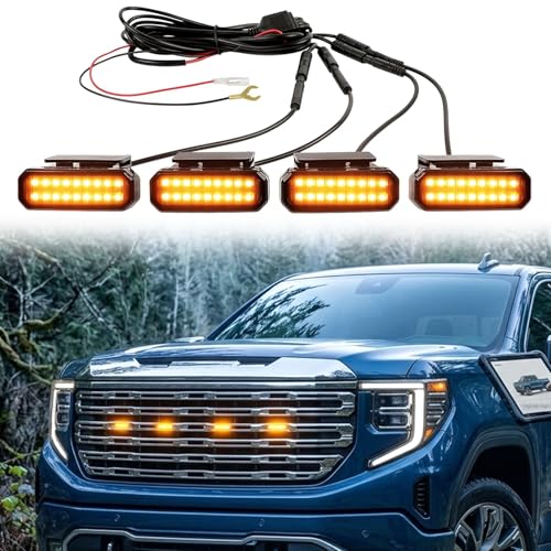 4PCS Clip-On LED Grille Lights, Black Amber Grill Lights with IP68 Waterproof for Trucks Cars, Easy No-Drill Installation Grille