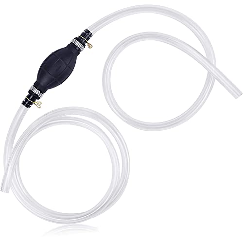 LSKASELUE Gasoline Siphon Hose Pump, Manual Rubber Hand Fuel Transfer Pump for Gas Oil and Water, High-Flow Fuel Siphon Pump with 2 PVC Hoses Brass Weight Tip and Pinch Clip