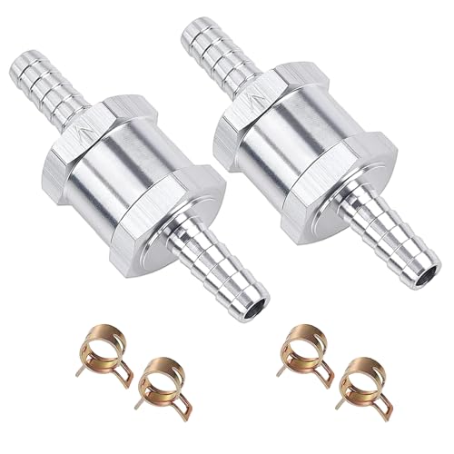 One Way Check Valve Non Return Aluminum Alloy Universal Fuel Gasoline Oil Petrol Water Flow Direction Control for Vehicles and Low Pressure Systems Silver (10mm)