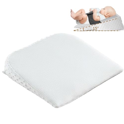 Baby Wedge Pillow for Newborn 15x19x5 Double-Sided Anti Reflux Pillow for Baby with Fastening Tape Waist Belt & Zippered Cover 15°Memory Foam Newborn Essentials