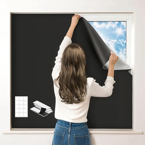 1PC Blackout Window Cover 100 Percent Magnetic No-Drill Cut-to-Fit 118 x 57 Inch Portable Shade for Bedroom Nursery RV Media Room, Black, 145X100