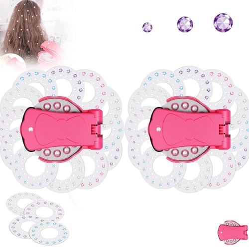 Glitter Diamond Hair Gemstone Styling Set - Reusable No-Heat Gem Stamper Applicator with Decorative Discs, Bling Glitter Diamond Tool Stapler Hair for Hair & Clothes (Pink-2pcs)
