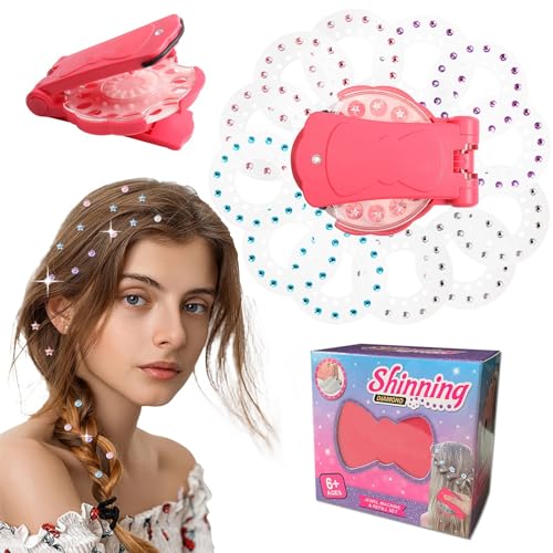 Glitter Diamond Styling Tools Hair Gemstone Styling Set, Clothes, Accessories, No Heat Required Hairs Style Accessories, Hairs Gems Stamper Tool Gift (Pink)