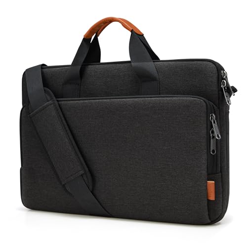 MoKo 15.6 Inch Laptop Bag for Women, Large Teacher Nurse Tote Work Bags Messenger Computer Handbag with File Pockets, Tablet Compartment, Bottle Holder and Detachable Adjustable Shoulder Strap, Black