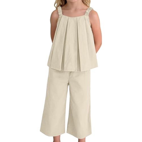 Teen Girls Linen Outfit Spaghetti Strap Camisole & Wide-Leg Pants 2026 Summer Fashion 2-Piece Set Lightweight Preppy Clothes