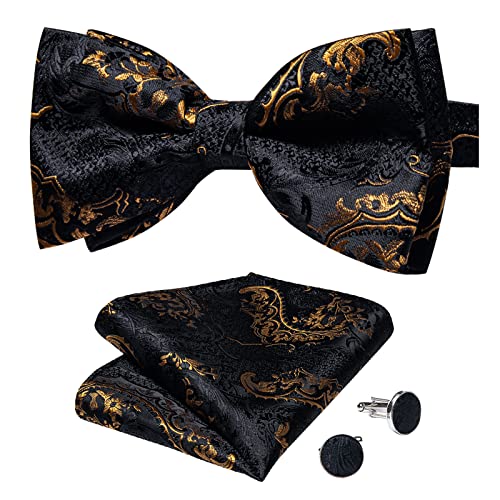 JEMYGINS Mens Paisley Bow Tie and Lapel Pin Necktie Pocket Square and Tie Clip with Sets for Business Casual 4PCS