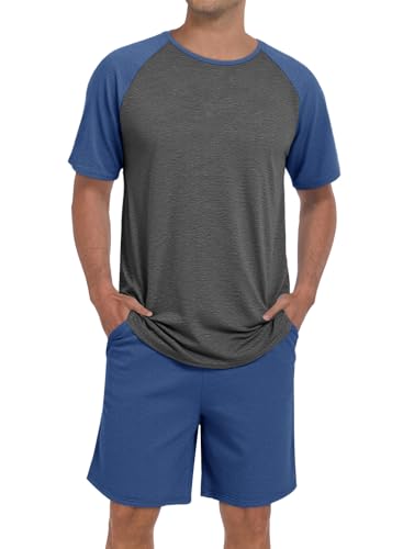 Men's Pajamas Set Casual Short Sleeve Crew Neck T Shirts and Lounge Shorts Soft Pjs 2 Piece Loungewear