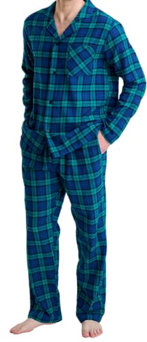 Asicimogy Mens Flannel Pajamas Set Cotton Plaid Loungewear Long Sleeve Button-Down Top & Pants with Pocket Casual Pjs