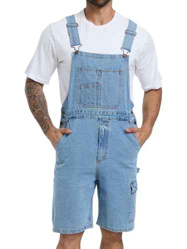 Men's Denim Overalls 2026 Summer Loose Fit Bib Overalls Vintage Straight Leg Dungarees Multi-Pocket Workwear