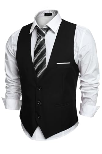 Jekioweii Men's Suit Vest Slim Fit Dress Vest Lightweight Waistcoat Casual Business Vests with Pockets for Wedding Party Prom