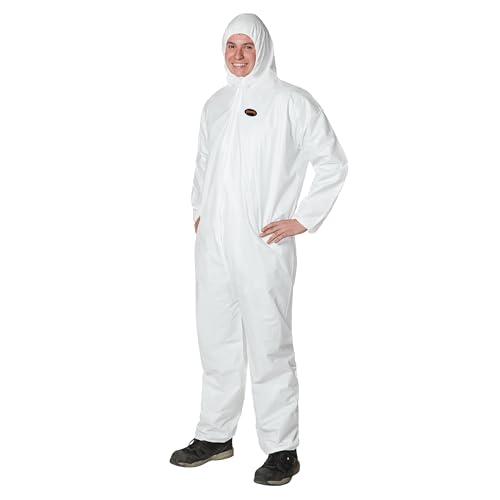 NIESUGA 5-25Pack Disposable Hazmat Suits with Hood & Shoe Covers 鈥 Breathable SMS Unisex Adult Coveralls(White, M鈥揦XXL) (5, XXL)