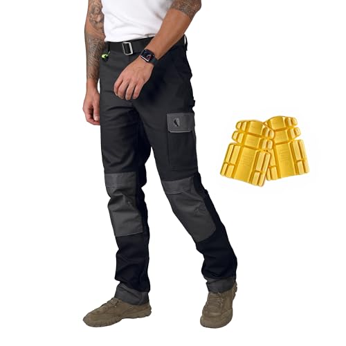 WORK IDEA Men's Stretch Cargo Pants, Relaxed Fit Flex Cotton Utility Trousers with 6 Pockets for Work, Outdoor & Travel