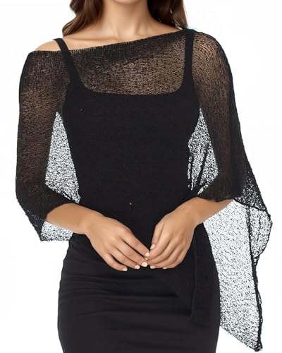 HAWILAND Ponchos for Women Off the Shoulder Sheer Knit Shrug Shawl Asymmetrical Tops Elegant See Through Beach Cover Up