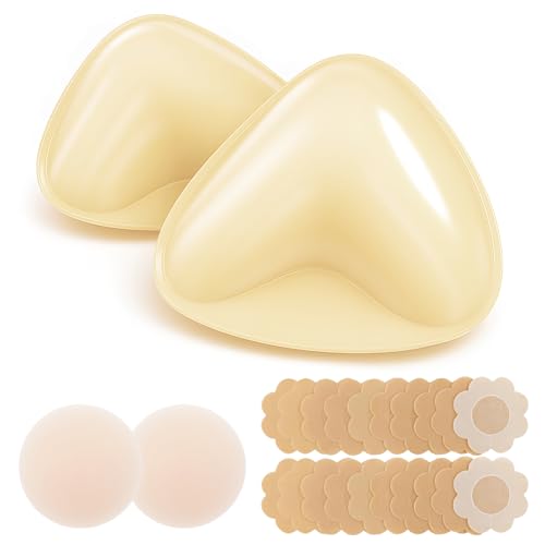 1 Pair Elegant Silicone Bra Inserts,Reusable Invisible Thickened Breast Pads,Soft Comfortable Enhancer for Bikini, Nude, Mid