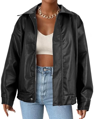 HiFacon Womens Oversized Premium Leather Bomber Jacket - Zip-Up Outerwear