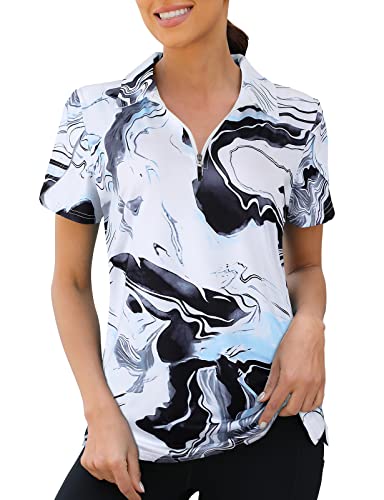Womens Golf Polo Shirts Performance Moisture Wicking Short Sleeve Shirt Print Business Casual Shirt Tennis Shirts Work Tops