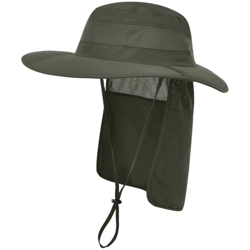 BeVistoso Sun Hat with Neck Flap & Front Brim Breathable Cotton Sun Protection Hat with Drawstring Multi-Purpose Basecap for Fishing, Beach, Camping, Outdoor Army Green