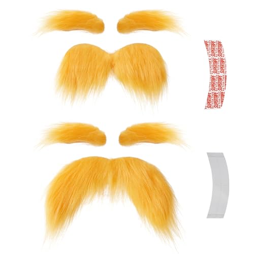 Yellow Mustache and Eyebrows - Self Adhesive Set, Funny Costume Accessories, Yellow Fake Beard | Christmas Fake Beard,